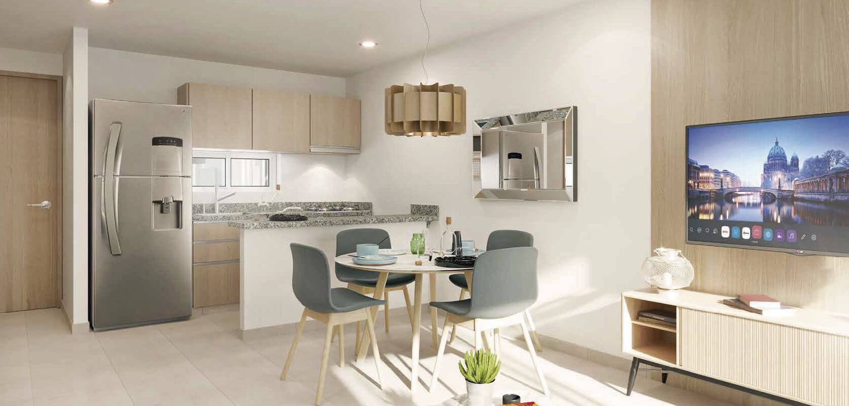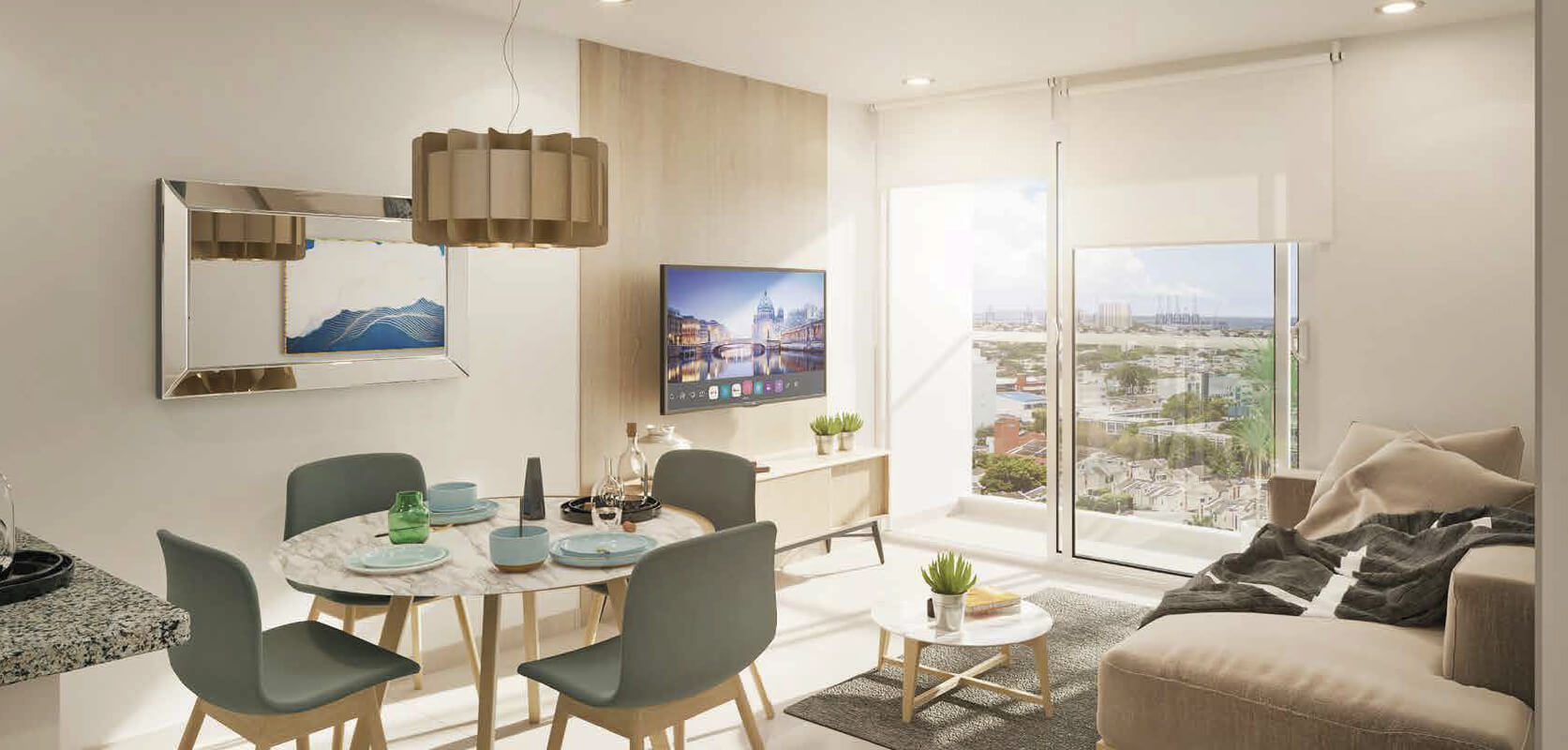 Oasis Park Blogs Apartamentos Amenidades Contáctanos Tour 360º COTIZAR Síguenos: INICIO / APARTAMENTOS Apartamentos En Oasis Park cada espacio ha sido planificado para brindarte a ti y a tu familia el hogar que merecen.Encontrarás apartamentos desde 60m2, con 2 alcobas, estudio, área de labores, 2 baños, sala comedor y cocina. "Las imágenes utilizadas son representaciones digitales del diseño y pueden variar en la percepción y construcción final. El mobiliario, pantry, puertas, electrodomésticos, acabados y demás elementos que aparecen en el apartamento y edificio modelo de las imágenes aquí contenidas son una representación a fin de ilustrar la utilización de los espacios y pueden diferir de lo entregado o no ser entregado según lo convenido en los contratos. Las áreas privadas y construidas podrían sufrir ajustes y quedarán finalmente determinadas en los contratos suscritos por las partes. Al cierre del negocio se adjuntará el plano final del inmueble negociado entre las partes que podrá tener diferencias o modificaciones al mostrado en esta imagen. El valor final del apartamento será equivalente a los SMMLV a la fecha de escrituración registrada en el contrato de vinculación legalizado ante la fiduciaria, cuyo tope máximo es de 150 SMMLV. Tipos de Apartamentos Escoge el apartamento que más se ajuste a tus necesidades. Con áreas desde 60m² hasta 65m². Apartamentos tipo A Apartamentos tipo B ¿Cómo podrás recibir tu apartamento? Se entregan en obra gris, pero te ofrecemos el beneficio adicional de poder recibirlo con los muebles de la cocina, estufa, horno, mesón y pantry en granito, baños con sus pisos y, enchape a media altura con sus respectivos implementos básicos, adicionalmente te entregamos el punto de aire acondicionado de ambas habitaciones.